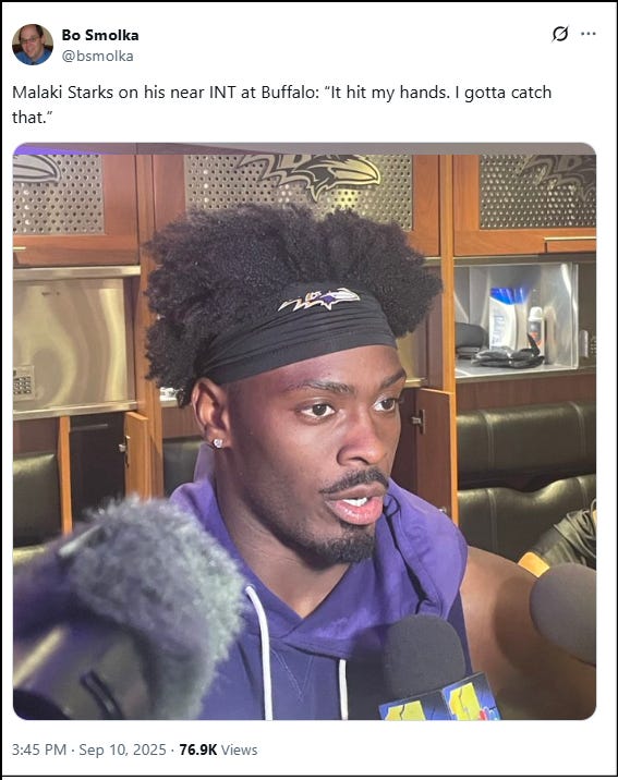 It is kind of ricidulous how close the Ravens came to winning this game. They dropped three interceptions: