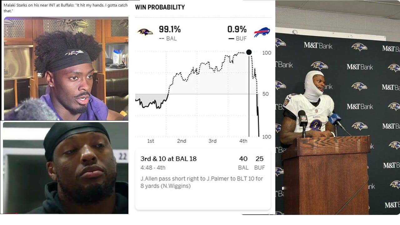 Shaffer focused on eight games the Ravens lost after having at least a 90% win probability. He calls out Special Teams execution; 4th-down woes; Offensive miscues; Defensive miscues; and some plain ol’ bad luck.