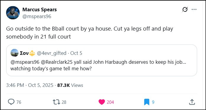 Marcus Spears implied as much Monday on Xitter, when asked why he & Ryan Clark think John Harbaugh deserves to keep his job: